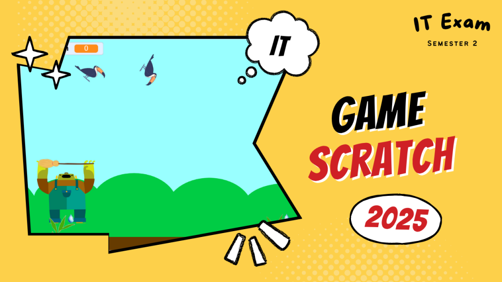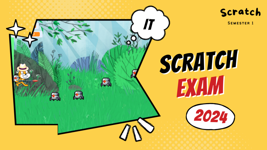 This is my first exam in 7th grade, which is to create a game using the Scratch platform. In this game, there are two levels: Defender and Maze.