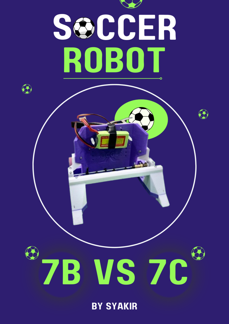 So, this is the fifth project of the IT course in semester 2, Soccer. In this project, class 7C joined and opposed class 7B. One by one, these 2 classes will be opposing each other. I got an opponent from 7B, Arfa. Because he was too good, I lost against him. But it doesn’t matter, because the important thing is that I can get a new experience playing this soccer robot. Although it was difficult to control, this project was very exciting.